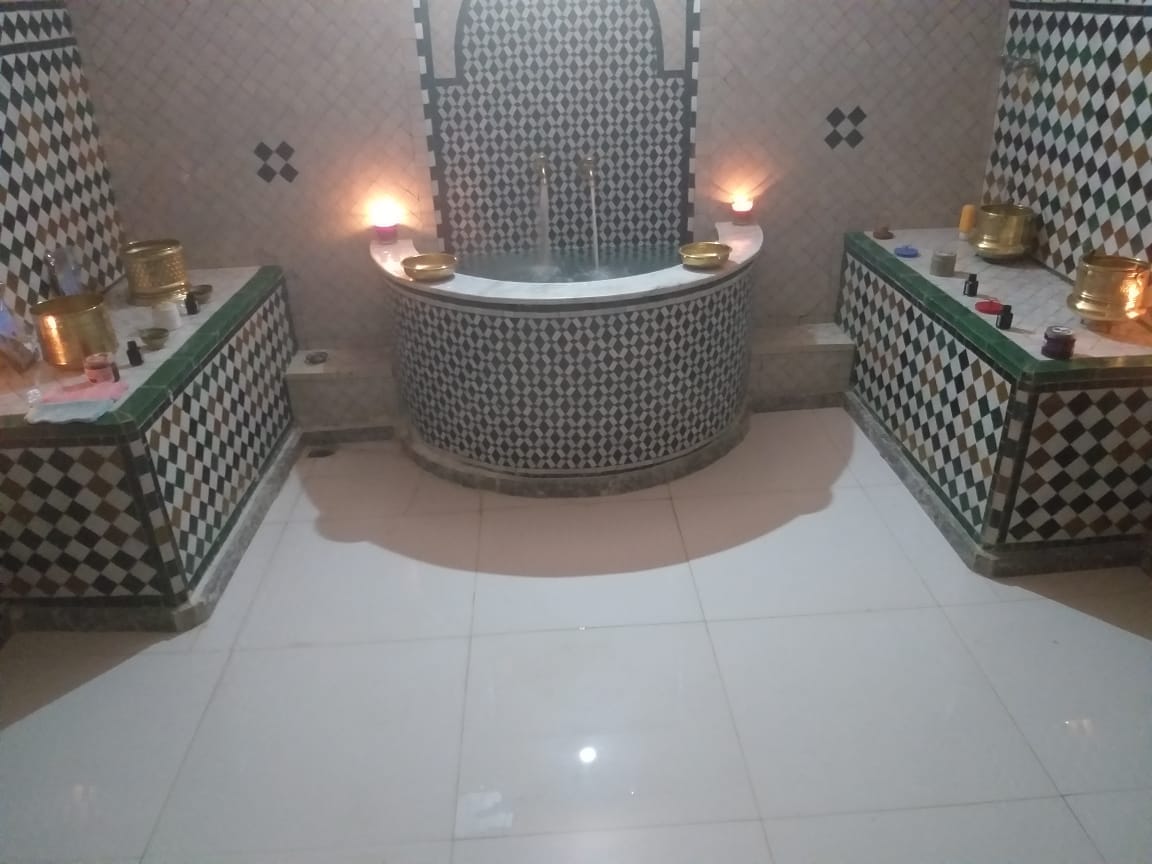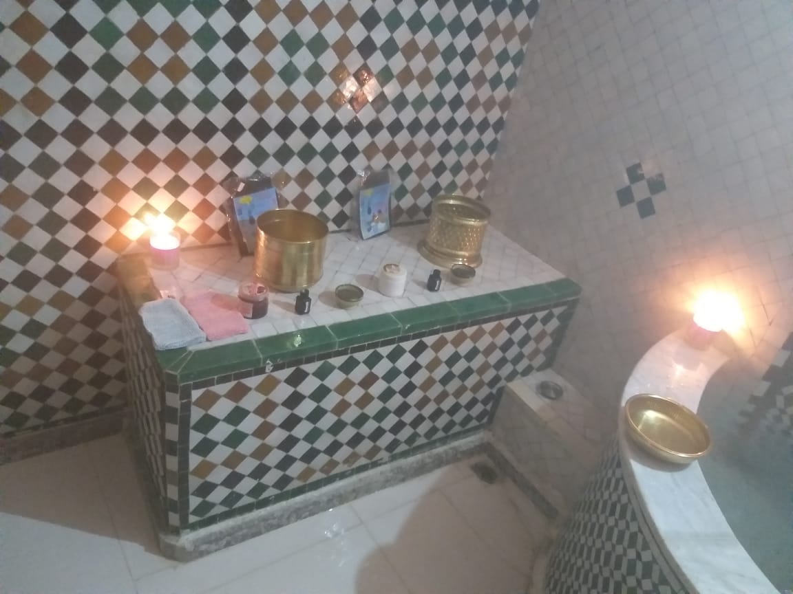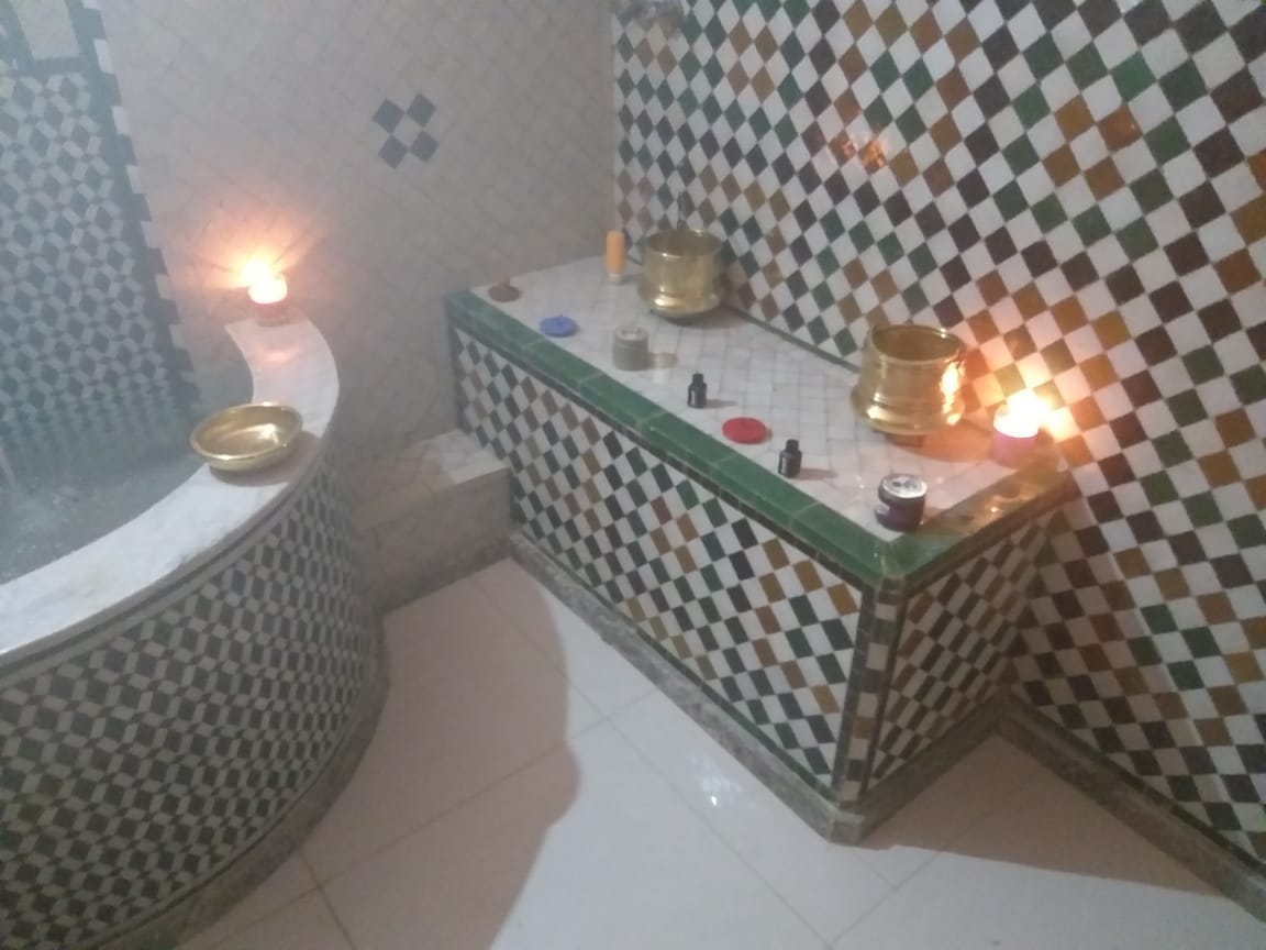 Hammam Traditionnel privé. Gommage, savonnage et modelage suivit d’ un enveloppement d’argile a l’ eau de rose. Massage relaxant a l’huile d’argan ou autre huile selon votre désire 45 min.