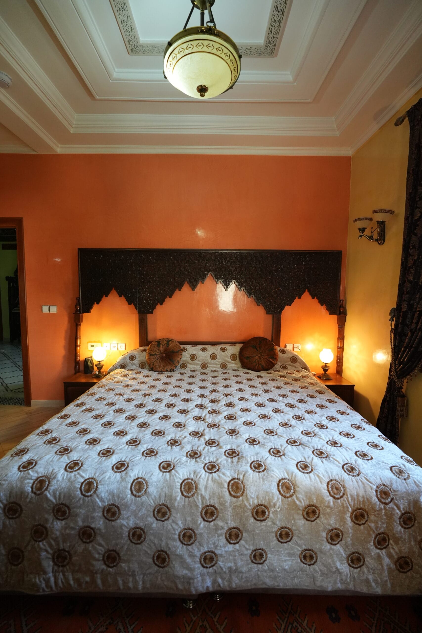 KAWTAR’s bedroom is traditionally refurnished witha spring color orange combined with brown velvet curtains. The room is totally the best fit for every person. All our Bedrooms are refurbished and include integrated Audio Music, Room Service order, TV.LCD with Satellite, Internet and high speed Wireless, Air conditioning and heating.