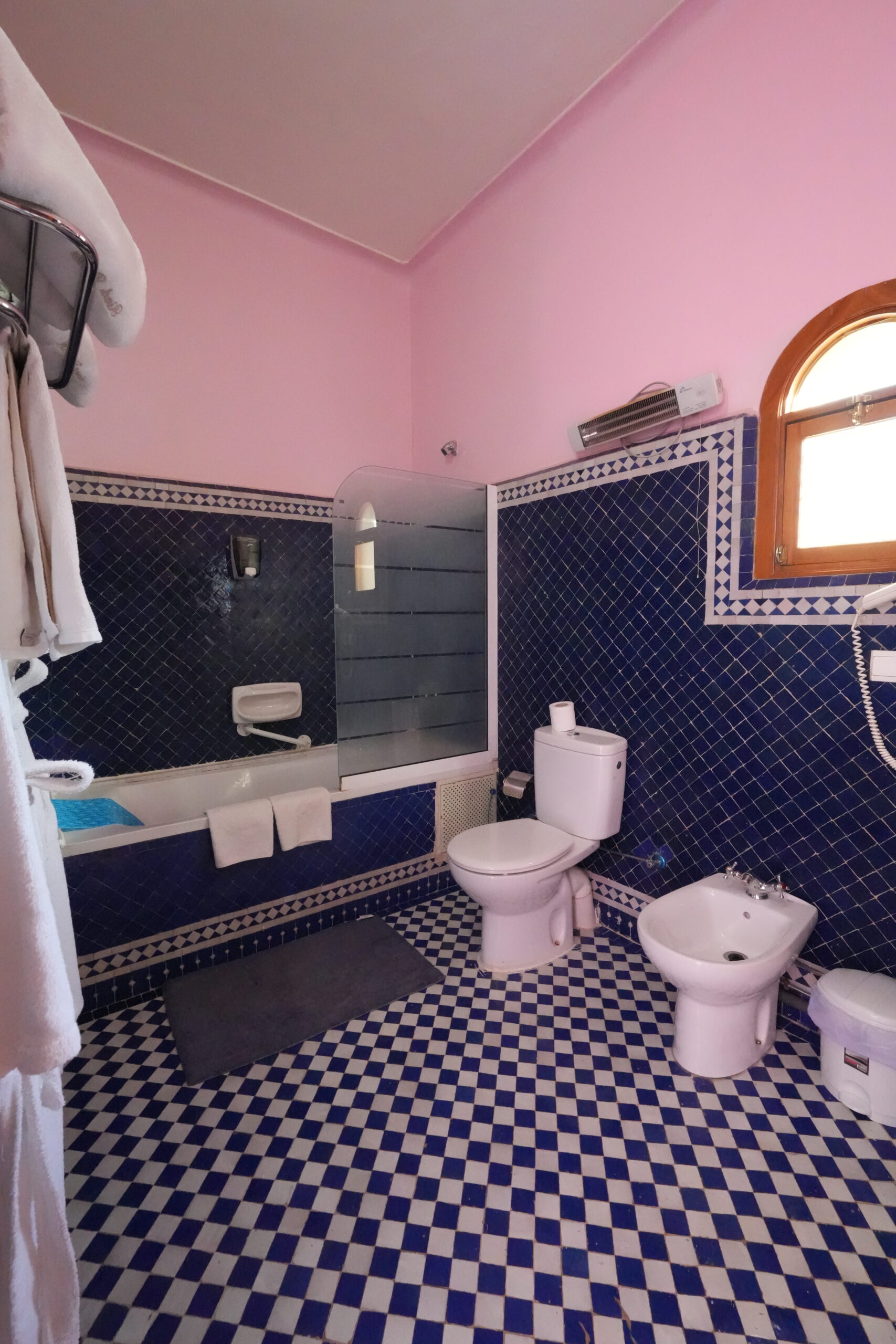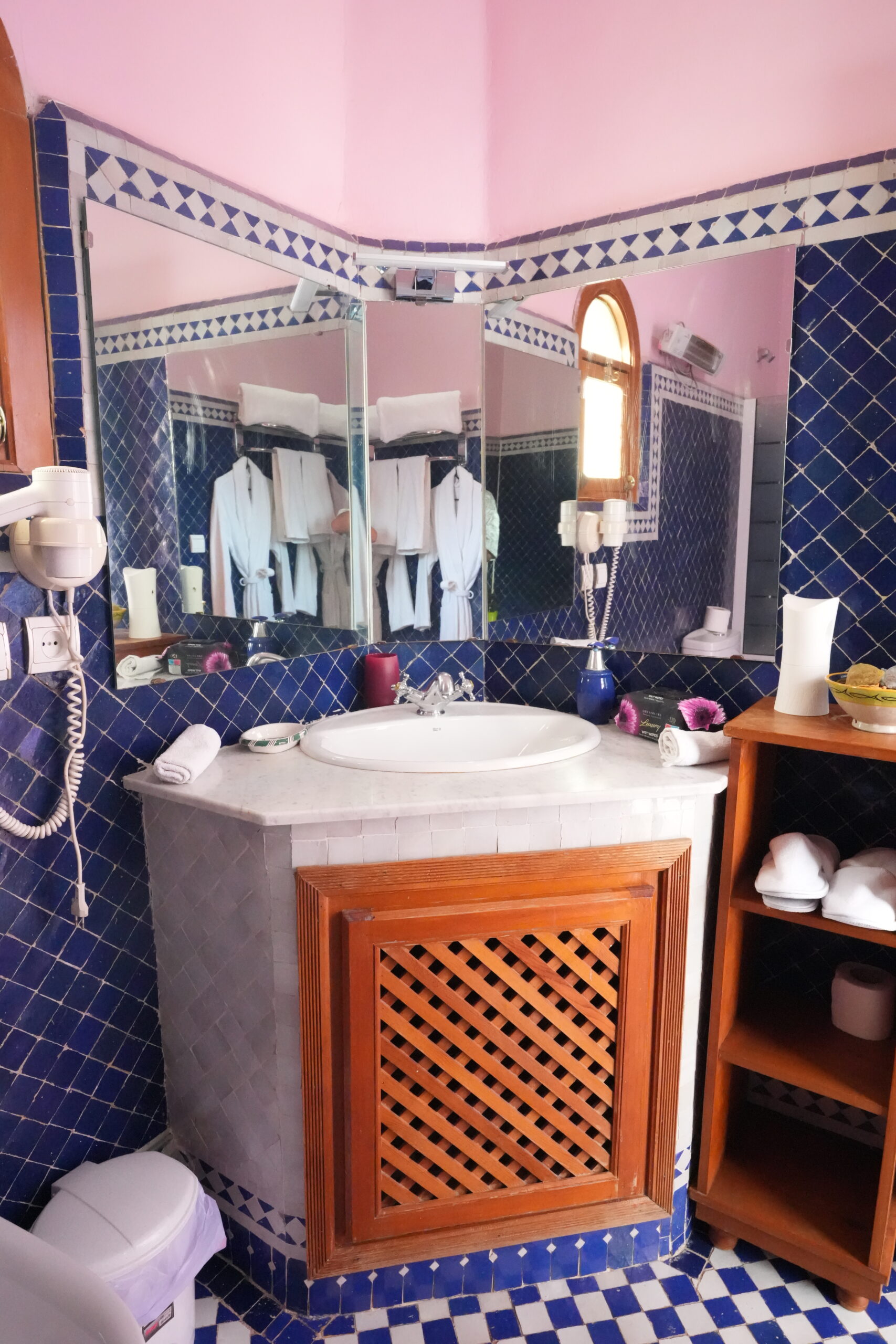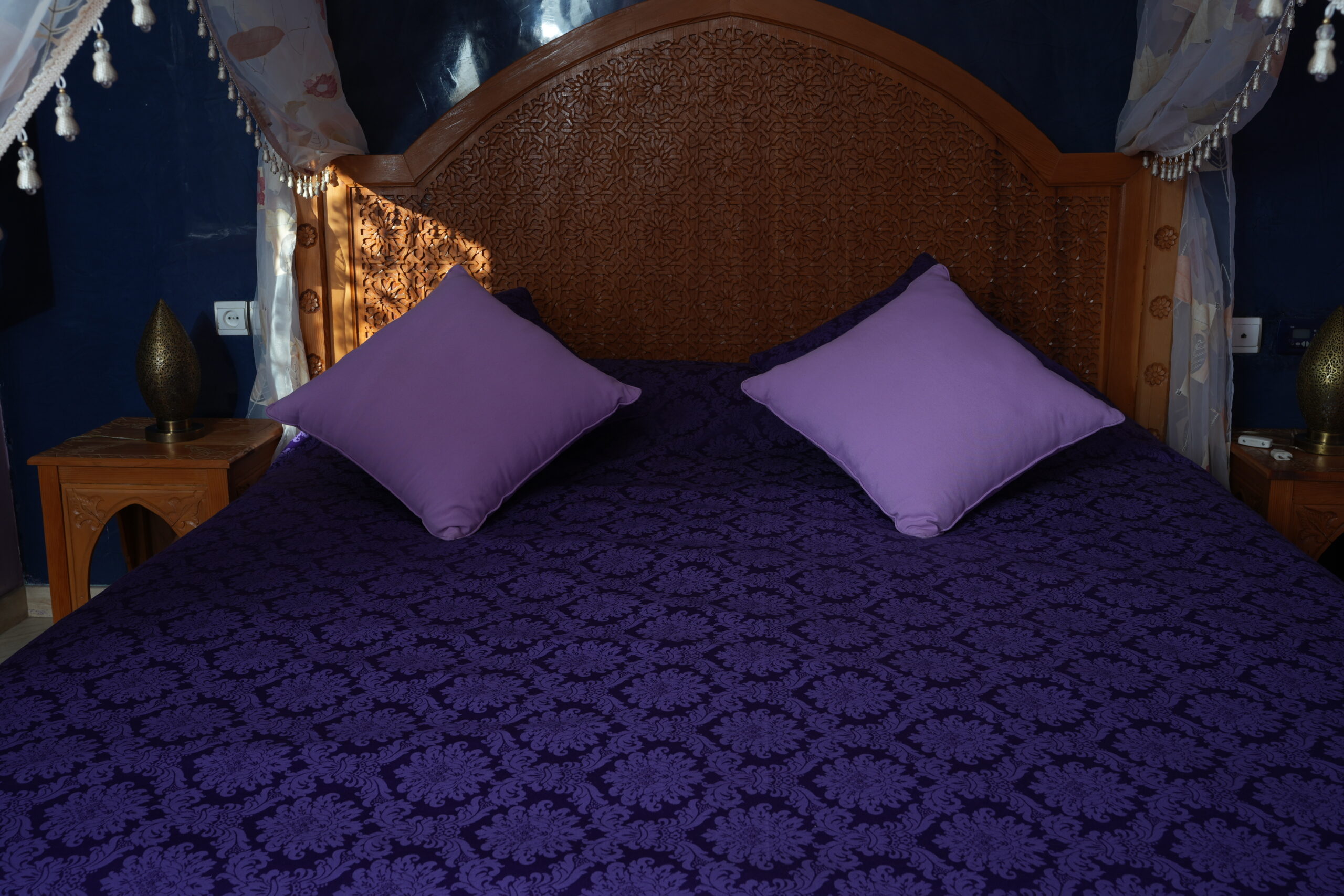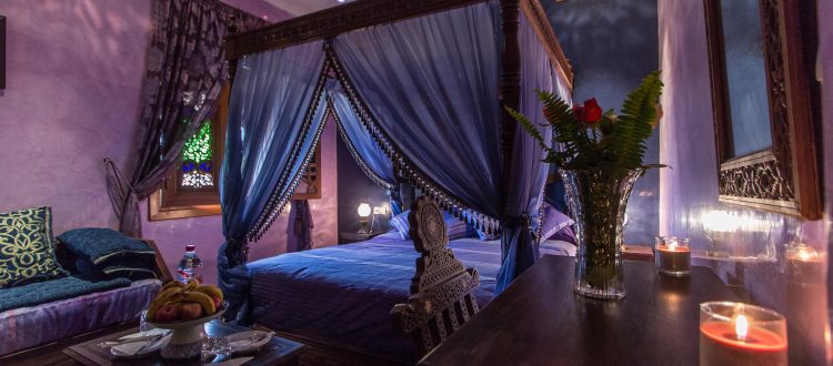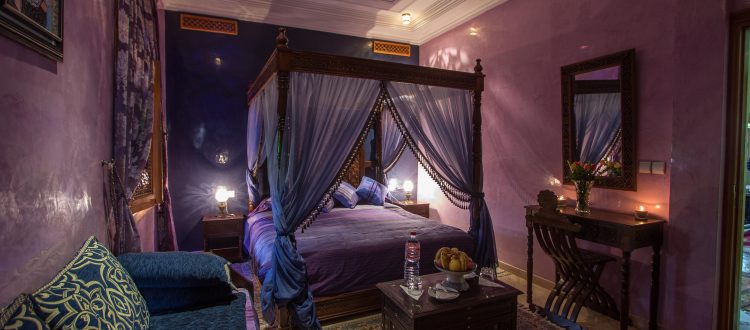 HOUDA’s Bedroom, is a comfortable room, fully equipped and decorated with top quality material. The room comes with dressing area off the bathroom, king size bed with canopy . All the walls are painted using Tadelakt. All our Bedrooms are refurbished and include integrated .