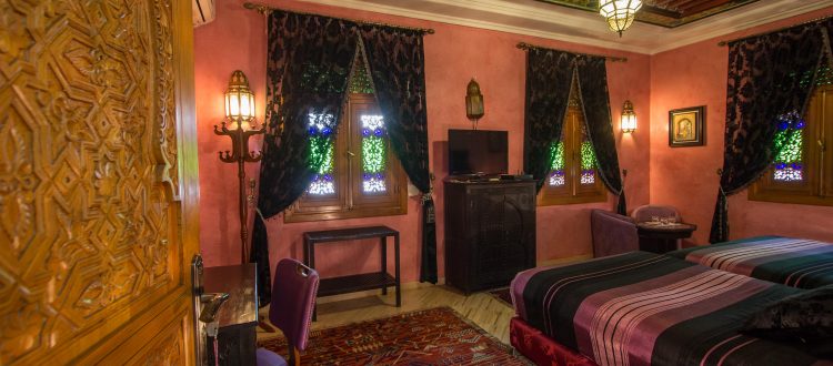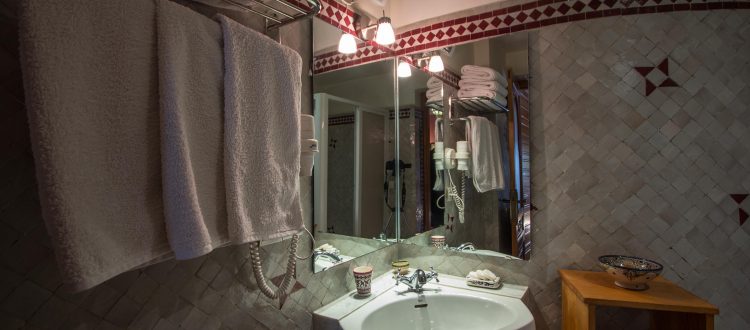 Sofia’s bedroom is a double king rooms, it is suitable for a small family number , or two friend’s couples. It has also a unique shower room that mixes the traditional and modern climate of showering. All the walls are painted using Tadelakt All our Bedrooms are refurbished and include integrated Audio Music, Room Service order, TV.LCD with Satellite, Internet and high speed Wireless, Air conditioning and heating.