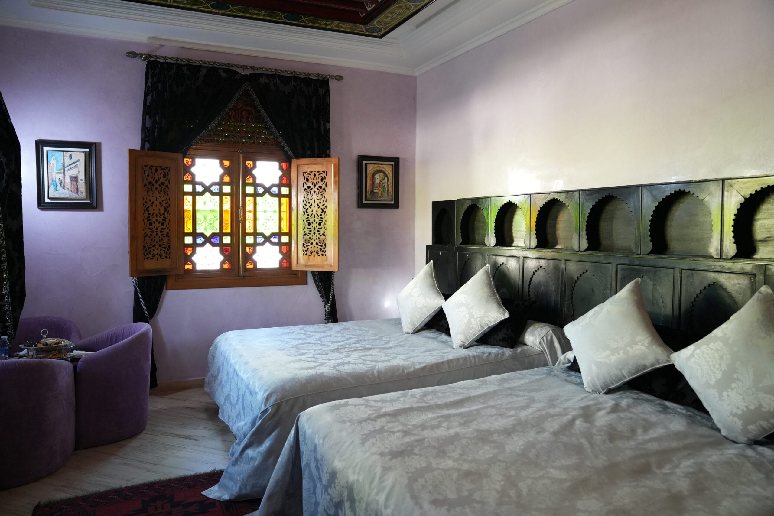 Sofia’s bedroom is a double king rooms, it is suitable for a small family number , or two friend’s couples. It has also a unique shower room that mixes the traditional and modern climate of showering. All the walls are painted using Tadelakt All our Bedrooms are refurbished and include integrated Audio Music, Room Service order, TV.LCD with Satellite, Internet and high speed Wireless, Air conditioning and heating.